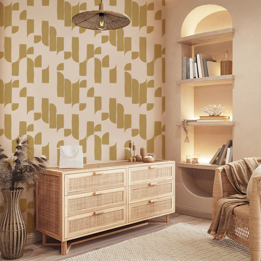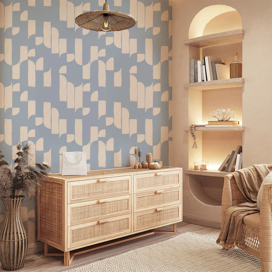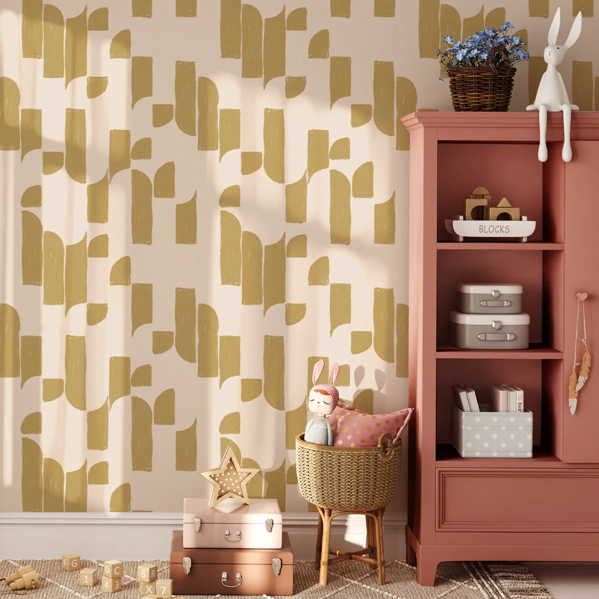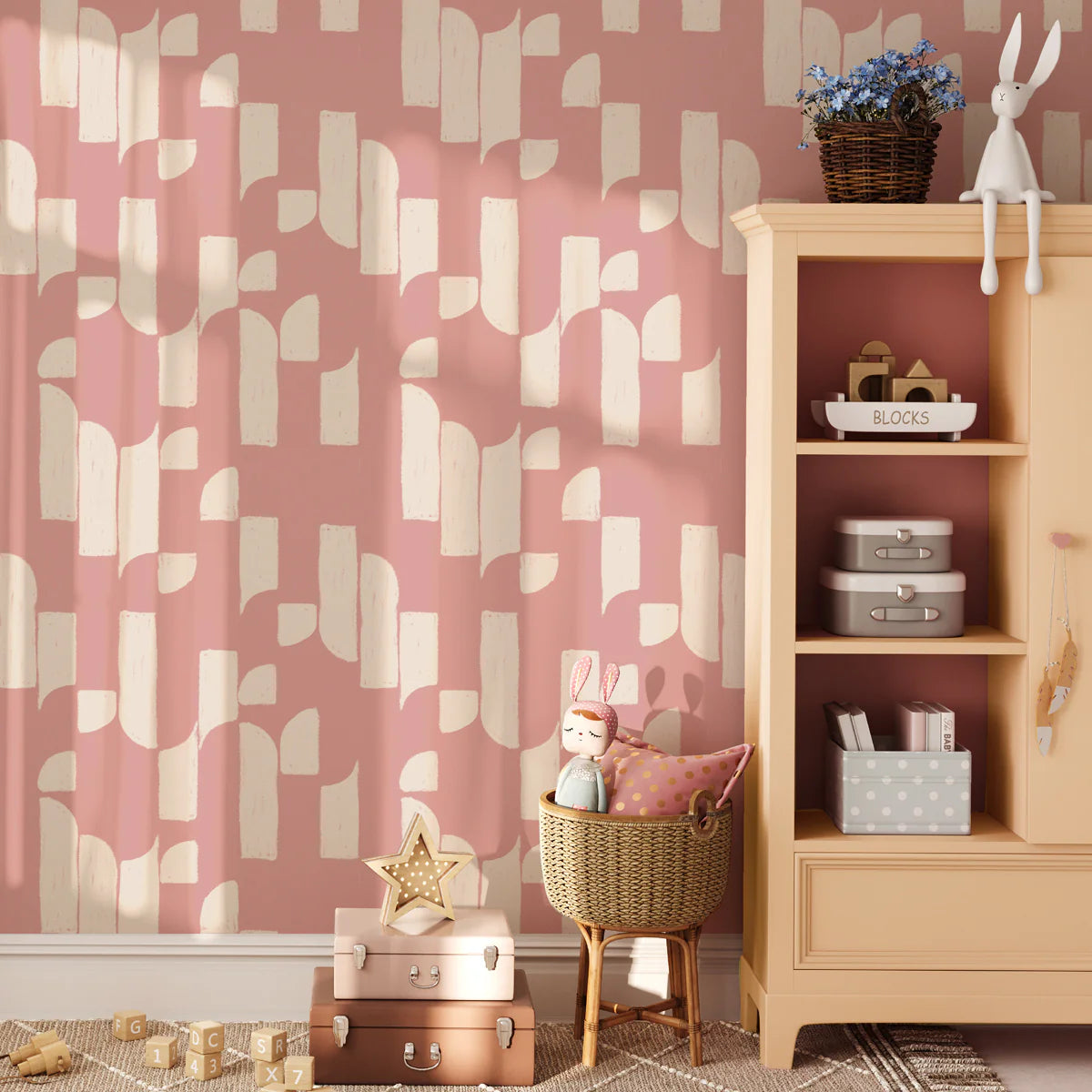 Dit abstracte behang, verkrijgbaar in vier kleuren, is de perfecte keuze voor een stijlvolle kinderkamer. De handgetekende vormen in zachte pasteltinten zorgen voor een speelse en rustige sfeer. Dit unieke kinderkamerbehang brengt warmte in de baby- of kinderkamer.
