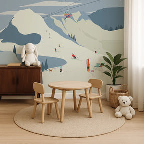 Breng sfeer in je interieur met dit bijzondere muurschildering behang, ontworpen door Annet Weelink Design. Elk detail is met de hand getekend en daarna zorgvuldig gedrukt op hoogwaardig behangmateriaal. Het resultaat is een unieke eyecatcher die je ruimte direct een stijlvolle en persoonlijke uitstraling geeft. Dit behang is speciaal voor de wintersport fans die van sneeuw en de bergen houden.