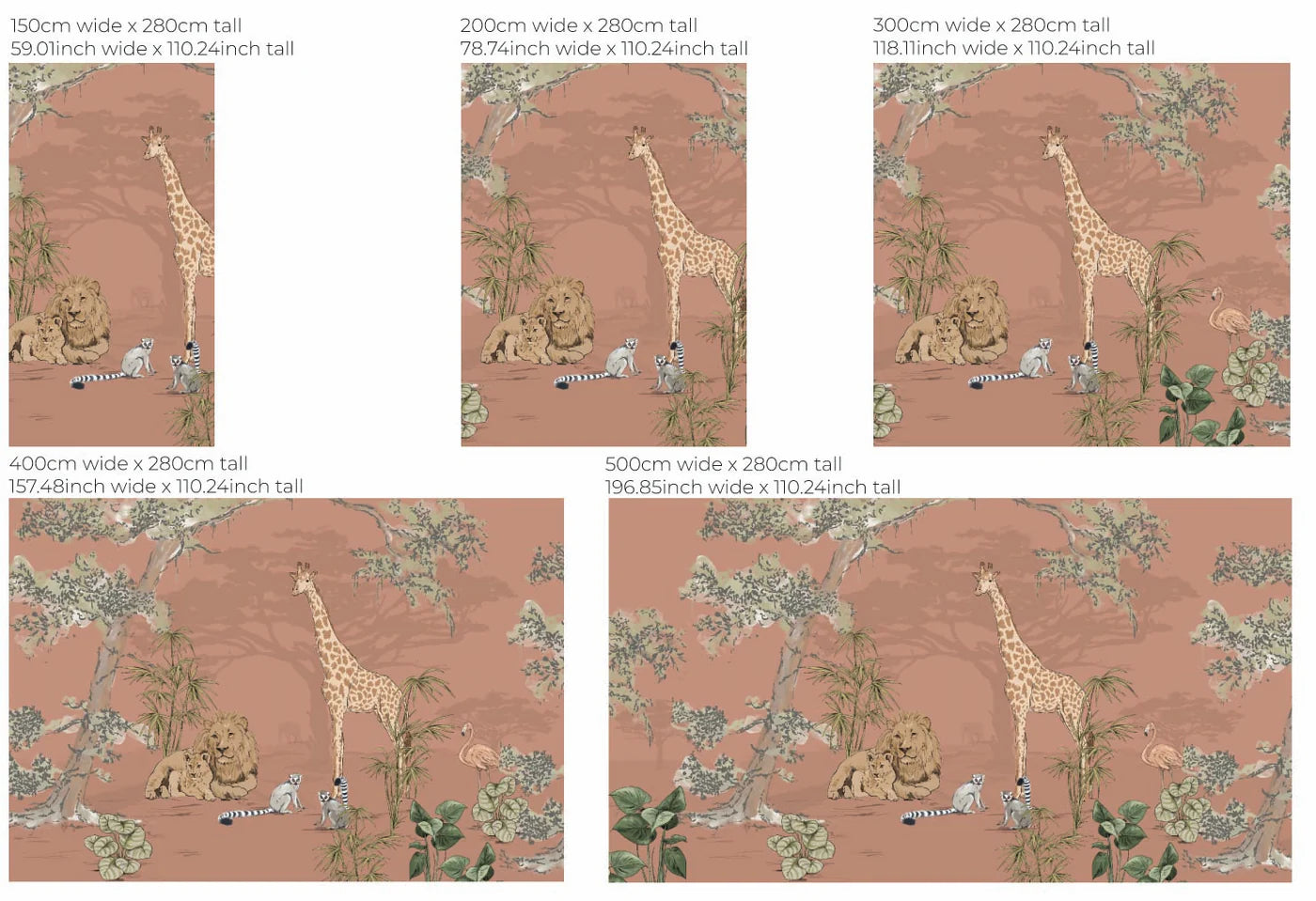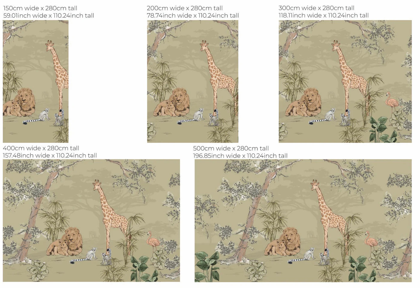 Breng sfeer in je interieur met dit bijzondere muurschildering behang, ontworpen door Annet Weelink Design. Elk detail is met de hand getekend en daarna zorgvuldig gedrukt op hoogwaardig behangmateriaal. Het resultaat is een unieke eyecatcher die je ruimte direct een stijlvolle en persoonlijke uitstraling geeft. Dit behang is speciaal voor jungle fans en iedereen die van leeuwen, giraffen en andere tropische dieren houdt.