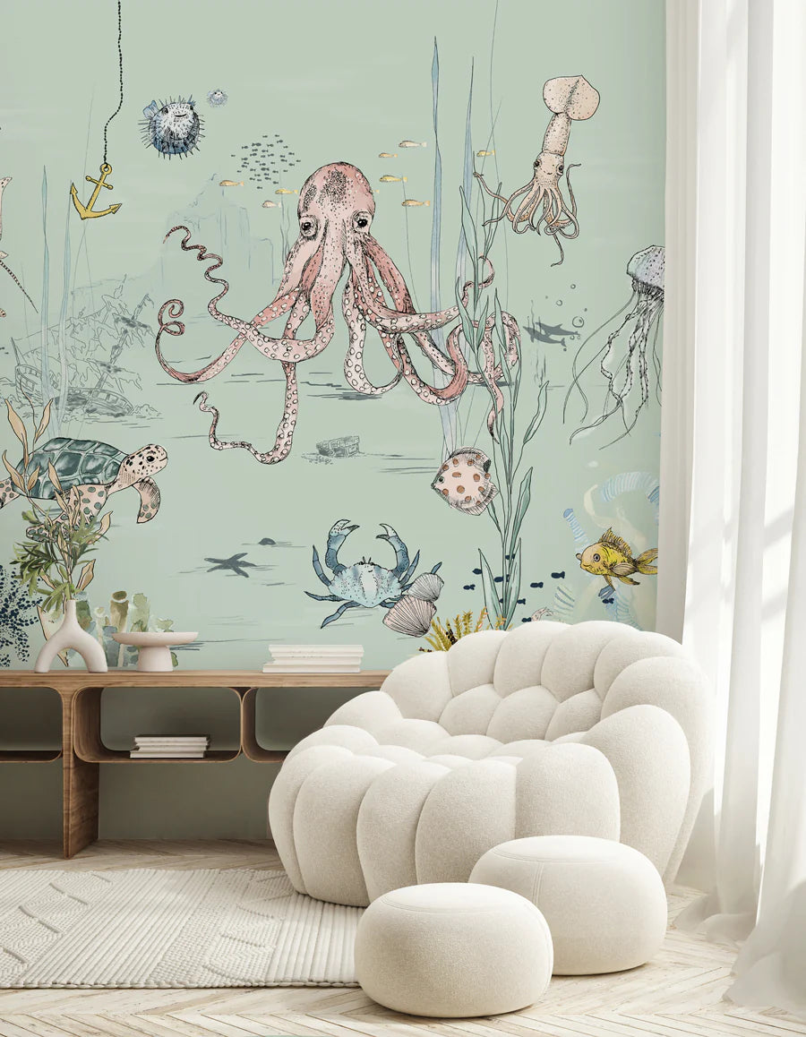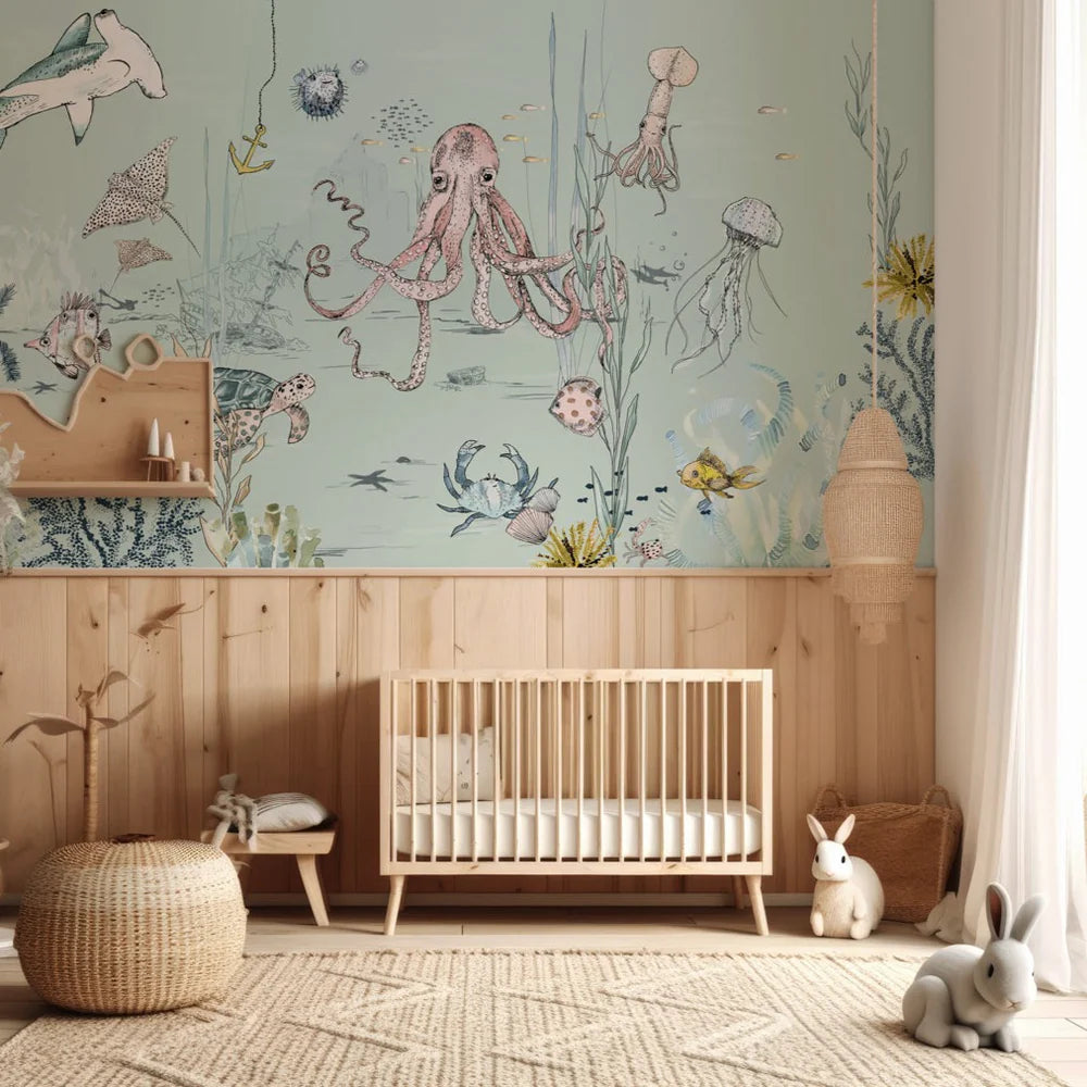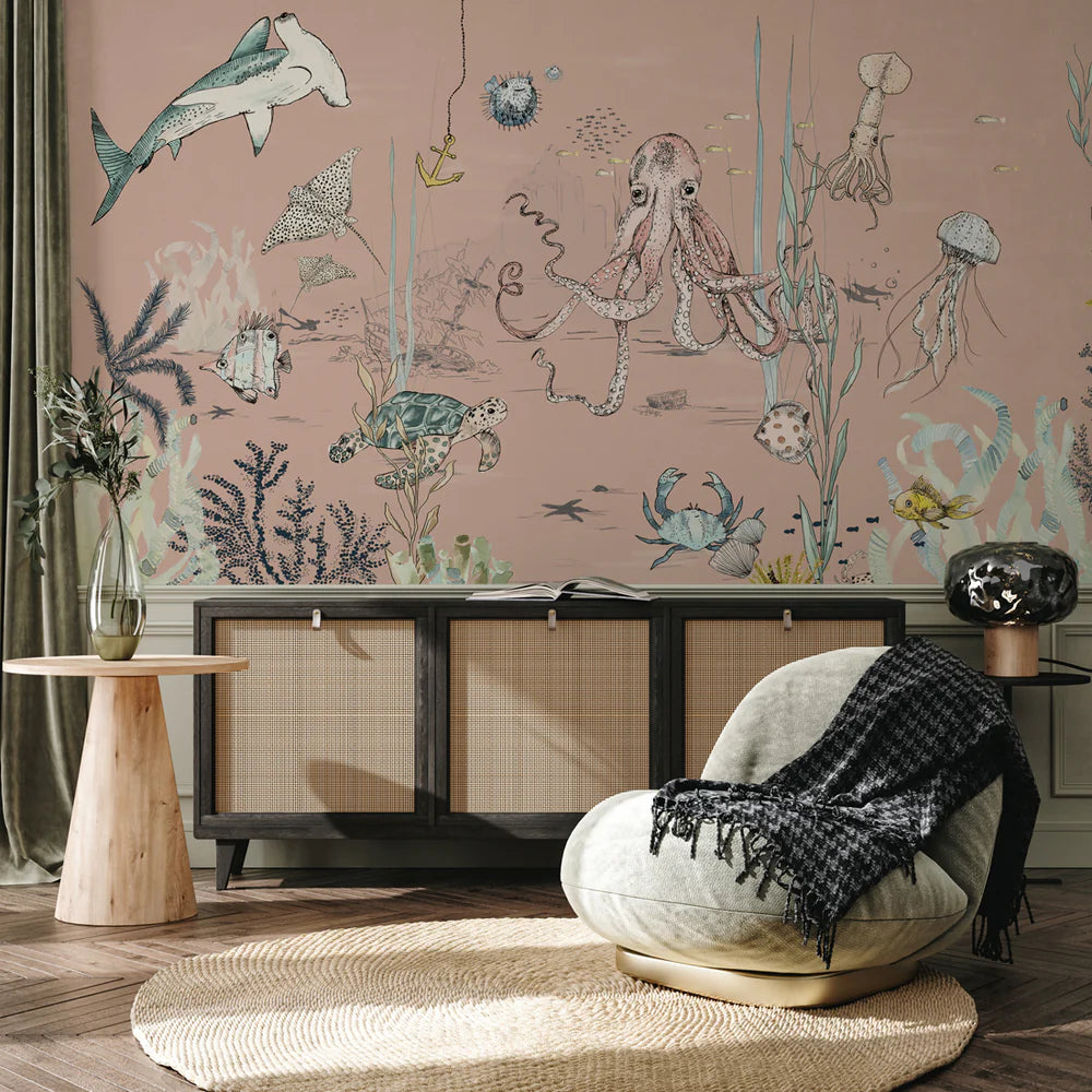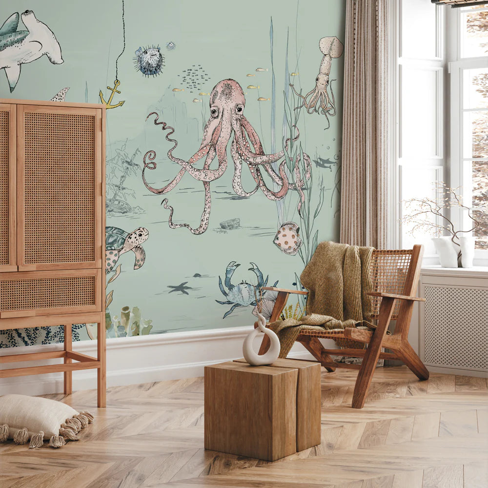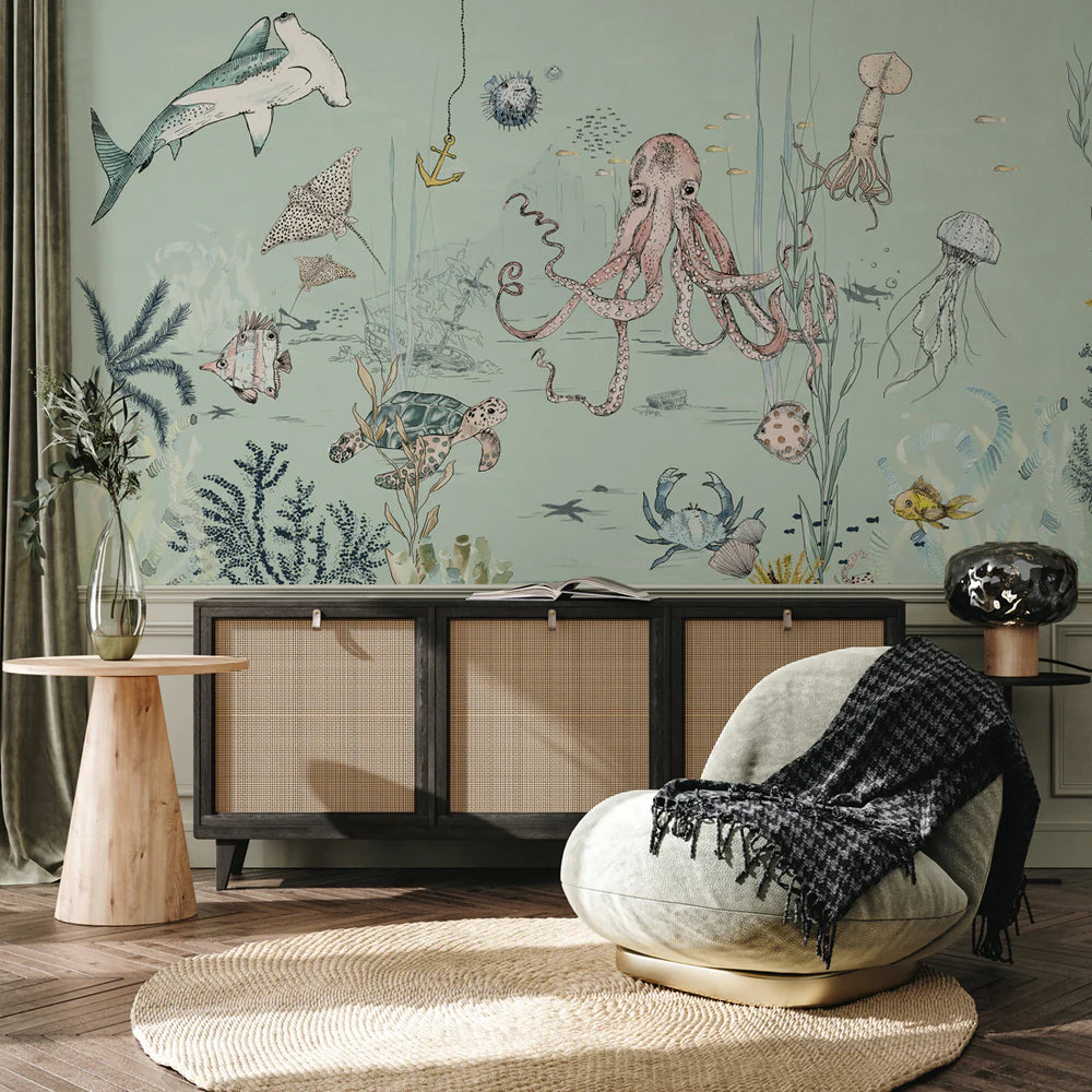 Breng sfeer in je interieur met dit bijzondere muurschildering behang, ontworpen door Annet Weelink Design. Elk detail is met de hand getekend en daarna zorgvuldig gedrukt op hoogwaardig behangmateriaal. Het resultaat is een unieke eyecatcher die je ruimte direct een stijlvolle en persoonlijke uitstraling geeft. Deze onderwaterwereld is speciaal ontworpen voor kinderen die van vissen en natuur houden