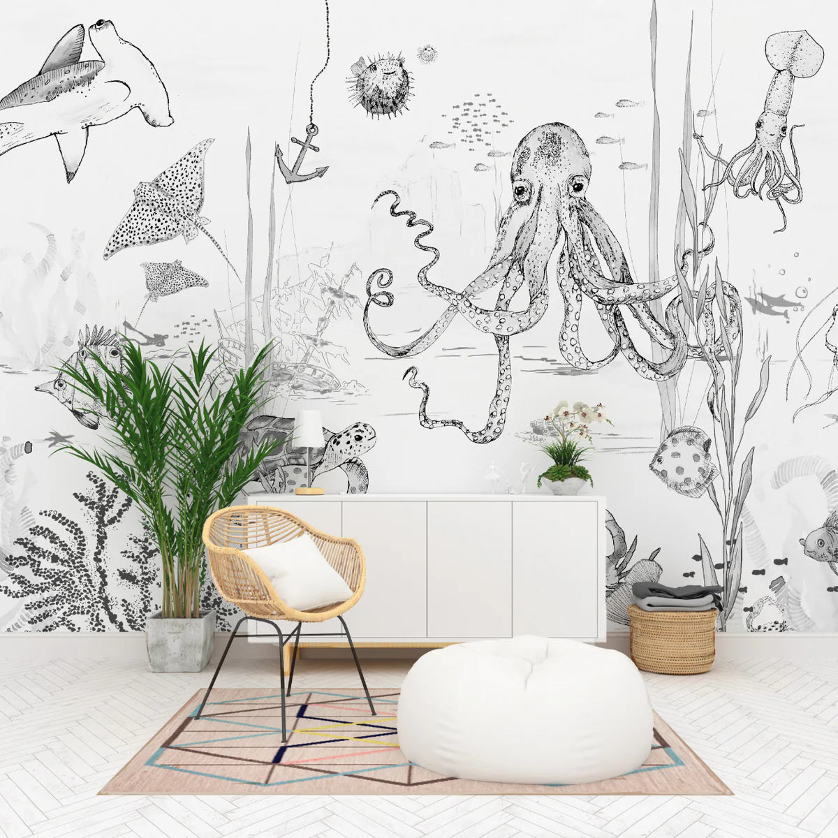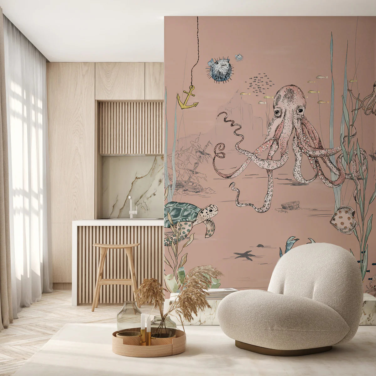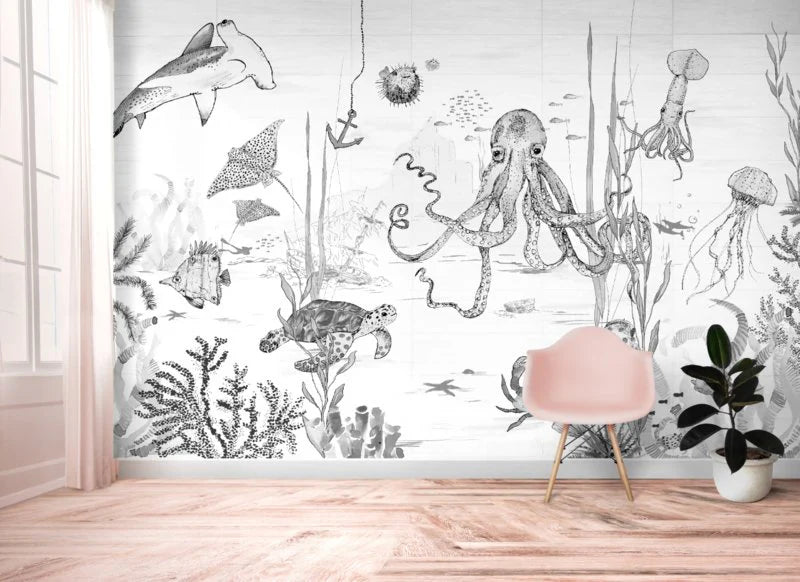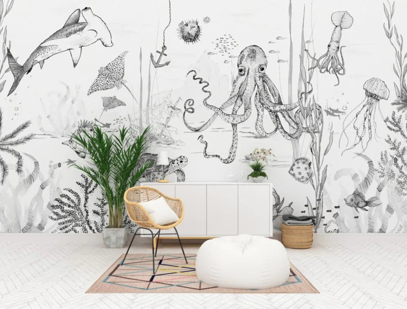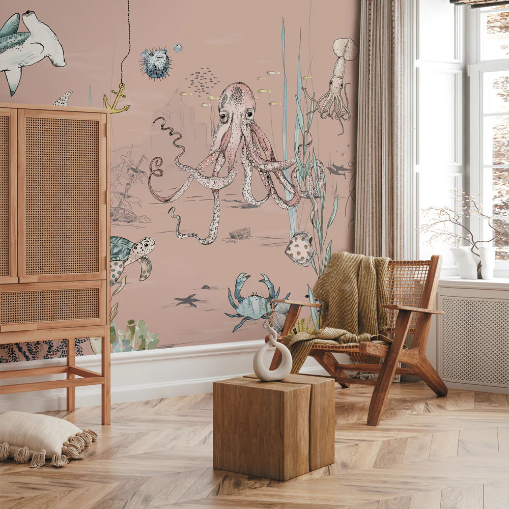 Breng sfeer in je interieur met dit bijzondere muurschildering behang, ontworpen door Annet Weelink Design. Elk detail is met de hand getekend en daarna zorgvuldig gedrukt op hoogwaardig behangmateriaal. Het resultaat is een unieke eyecatcher die je ruimte direct een stijlvolle en persoonlijke uitstraling geeft. Deze onderwaterwereld is speciaal ontworpen voor kinderen die van vissen en natuur houden
