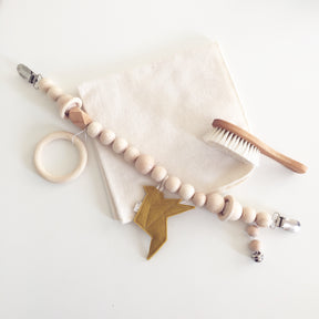 Maar het speelgoed moet ook toelaten om rustig te kunnen slapen. De kleuren en vormen die we gebruiken en het serene geluid van rammelend hout sluiten hierop aan.